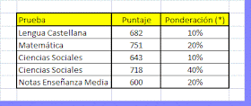 (*) Es el coeficiente que se le asigna a la prueba correspondiente en la carrera a la cual deseaba postular.